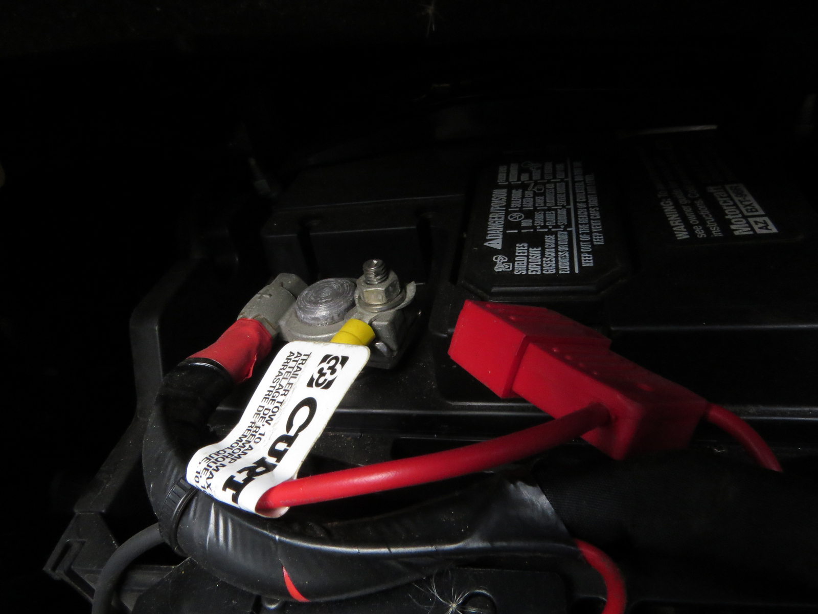 mostly hidden battery and pulled the 10 amp fuse in the Curt’s power wire, then plugged it back in because