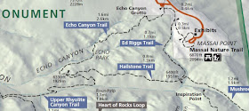 For much of the year they run a van from the visitor center up to the Echo Canyon and Massai Point trailheads. This way most of your actual boots-on-the-ground hiking will be downbound and you will only pass this point where I'm standing now once.
