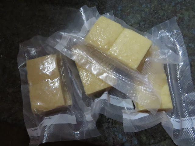 The down-side is that the nine 400 calorie squares are packaged in a single pouch, so once opened - well - there goes the shelf-life for the leftovers! So I use a vacuum sealer and repackage the squares into 4 sets of two bars each. (The ninth bar? Well someone has to test this stuff out don't they?)